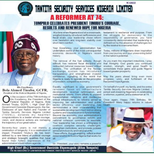 By Favour Bibaikefie High Chief (Dr.) Government Oweizide Ekpemupolo, popularly known as Tompolo, has commended President Bola Ahmed Tinubu for what he described as bold and...