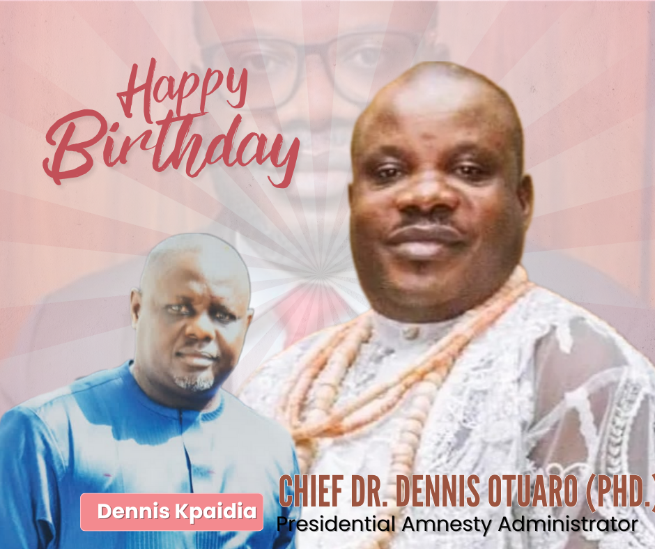Odimodi – Mr. Dennis Kpaidia, a prominent youth leader, has extended warm felicitations to his boss, Chief Dr. Dennis Brutu Otuaro (PhD), Administrator of the Presidential Amnesty Programme (PAP), on the occasion of his birthday anniversary.