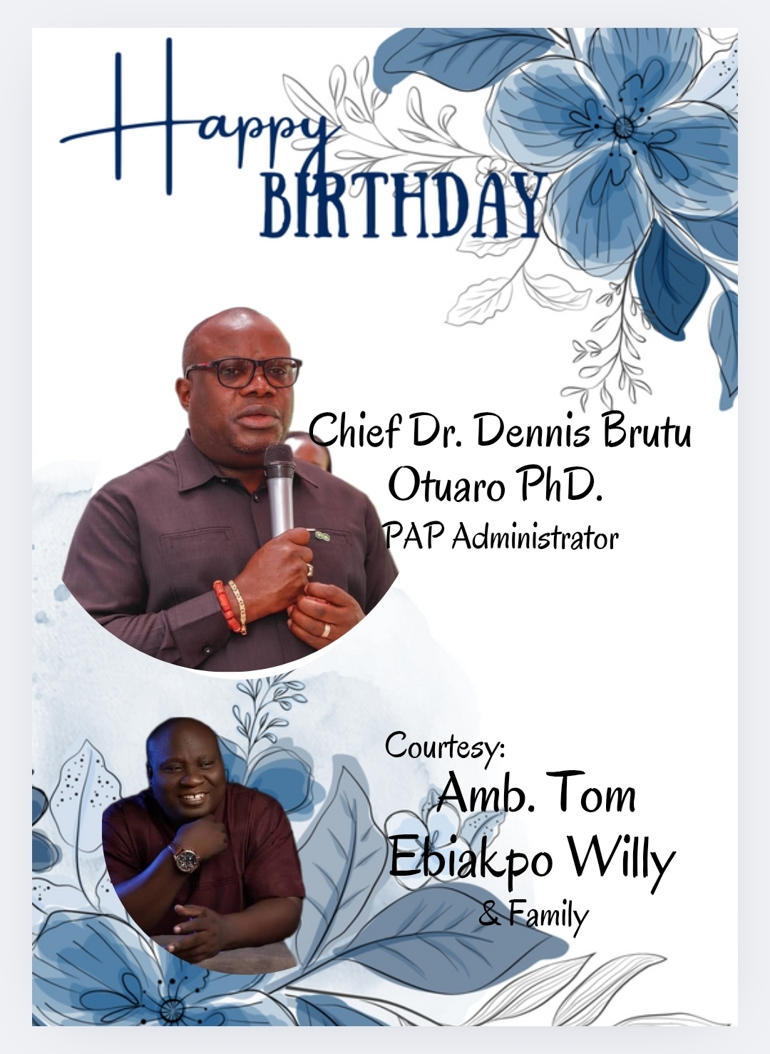 Warri – Seasoned Technocrat, Amb. Tom Ebiakpo Willy has extended warm felicitations to Chief Dr. Dennis Brutu Otuaro, PhD., Administrator of the Presidential Amnesty Programme (PAP), on the occasion of his birthday.