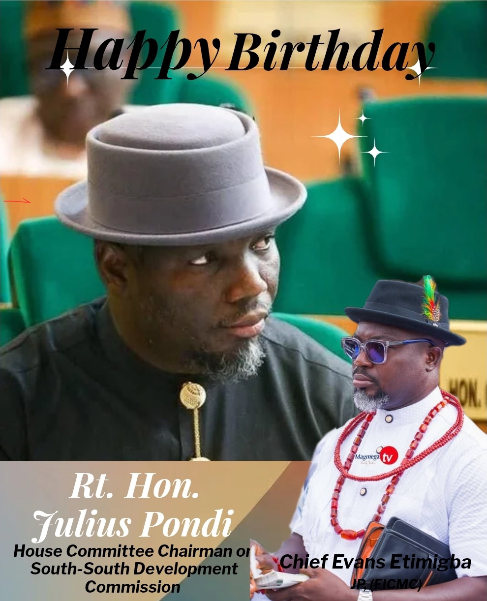 Chief Evans Etimigba JP (FICMC) has extended warm birthday felicitations to the member representing Burutu Federal Constituency and Chairman of the Federal House of Representatives Committee on South-South Development Commission, Rt. Hon. Julius Gbabojor Pondi on the occasion of his birthday anniversary.