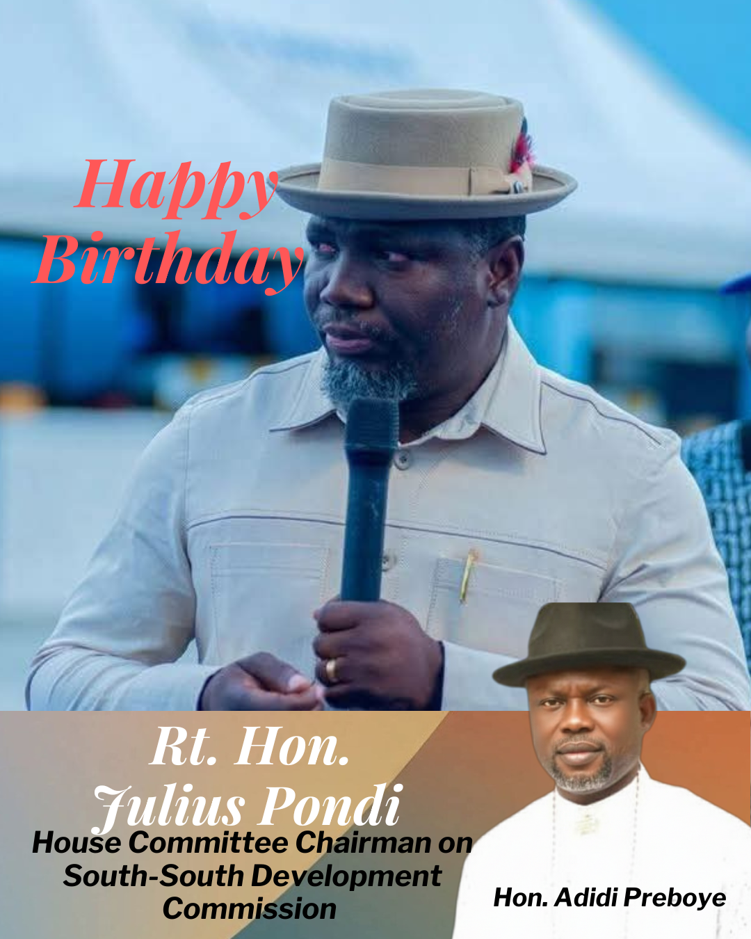 Former Special Assistant to the Governor of Delta State, Hon. Adidi Preboye, has extended warm Birthday wishes to Rt. Hon. Julius Gbabojor Pondi, Chairman of the House Committee on South-South Development Commission, describing him as a dependable friend, principal, and exceptional leader whose impact continues to resonate across not only his immediate constituency but across the Niger Delta.