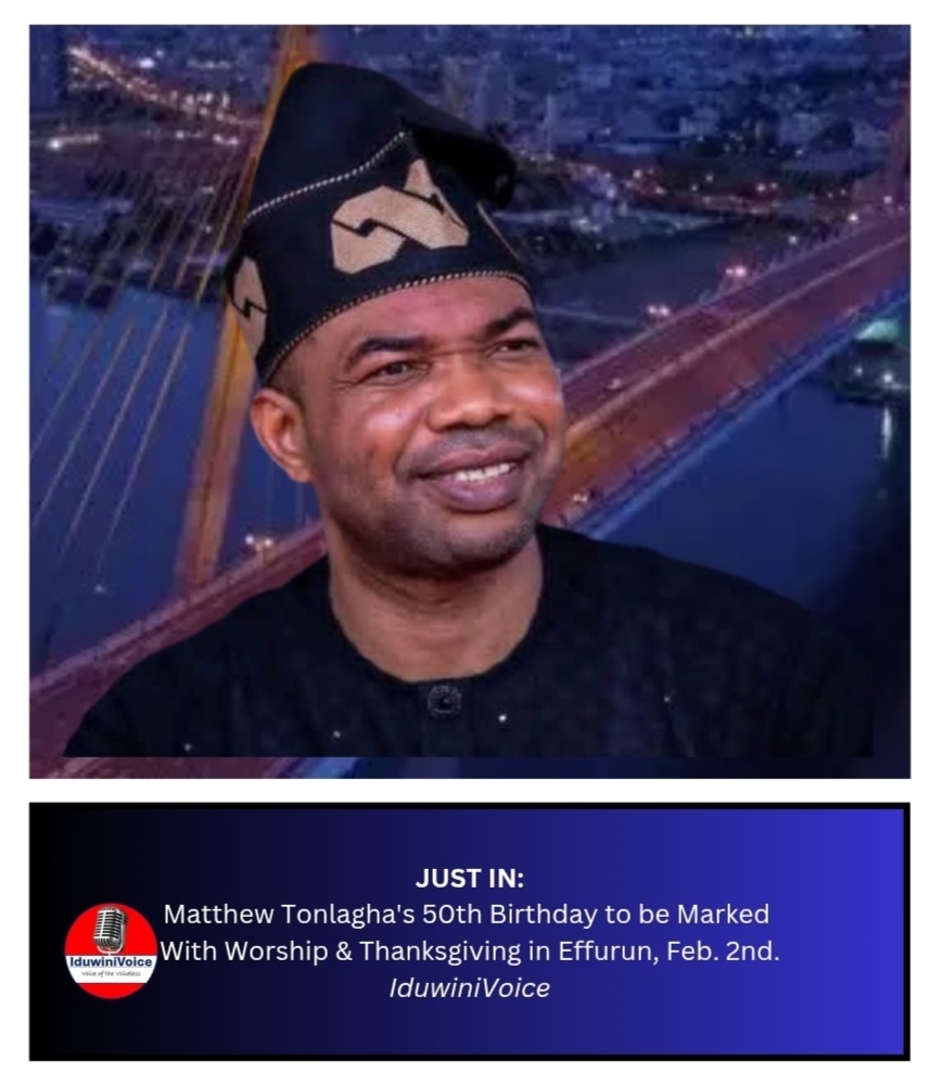 Effurun, Delta State — The Chairman of Maton Engineering Nigeria Limited, Mr. Matthew Tonlagha, will celebrate his 50th birthday with a worship-centred thanksgiving event, tagged Birthday Praise Day, on Monday, February 2, 2026.