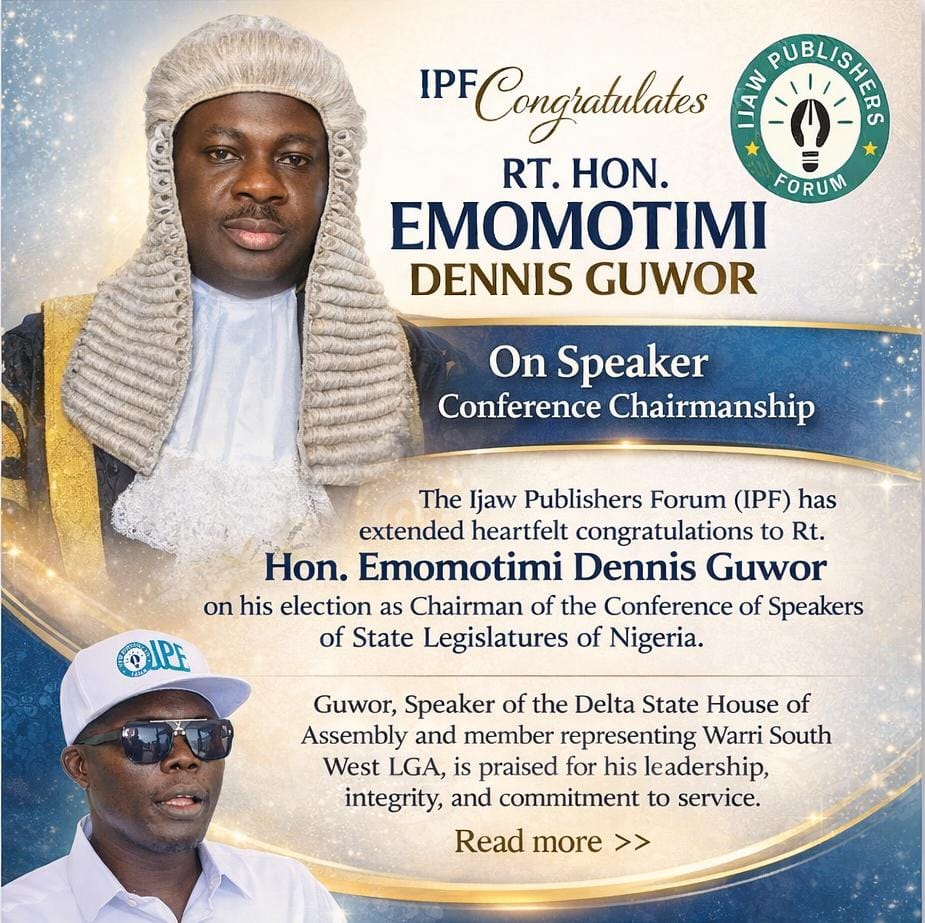 The Ijaw Publishers Forum (IPF) has congratulated Rt. Hon. Emomotimi Dennis Guwor on his election as Chairman of the Conference of Speakers of State Legislatures of Nigeria.