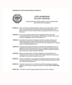 > “RESOLVED: That March 2, 2024 is designated Burna Boy Day in the City of Boston.”