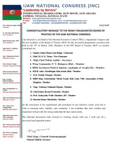 The was contained in a statement signed by the National Publicity Secretary, Chief (Engr.) Ezonebi Oyakemeagbegha and prwsnted during the inauguration ceremony, which took place on March 19, 2026, marks a significant step in strengthening the leadership structure of the apex socio-cultural organization. In a congratulatory message issued on behalf of the National Executive Council (NEC), the INC commended the successful constitution and swearing-in of the new board.