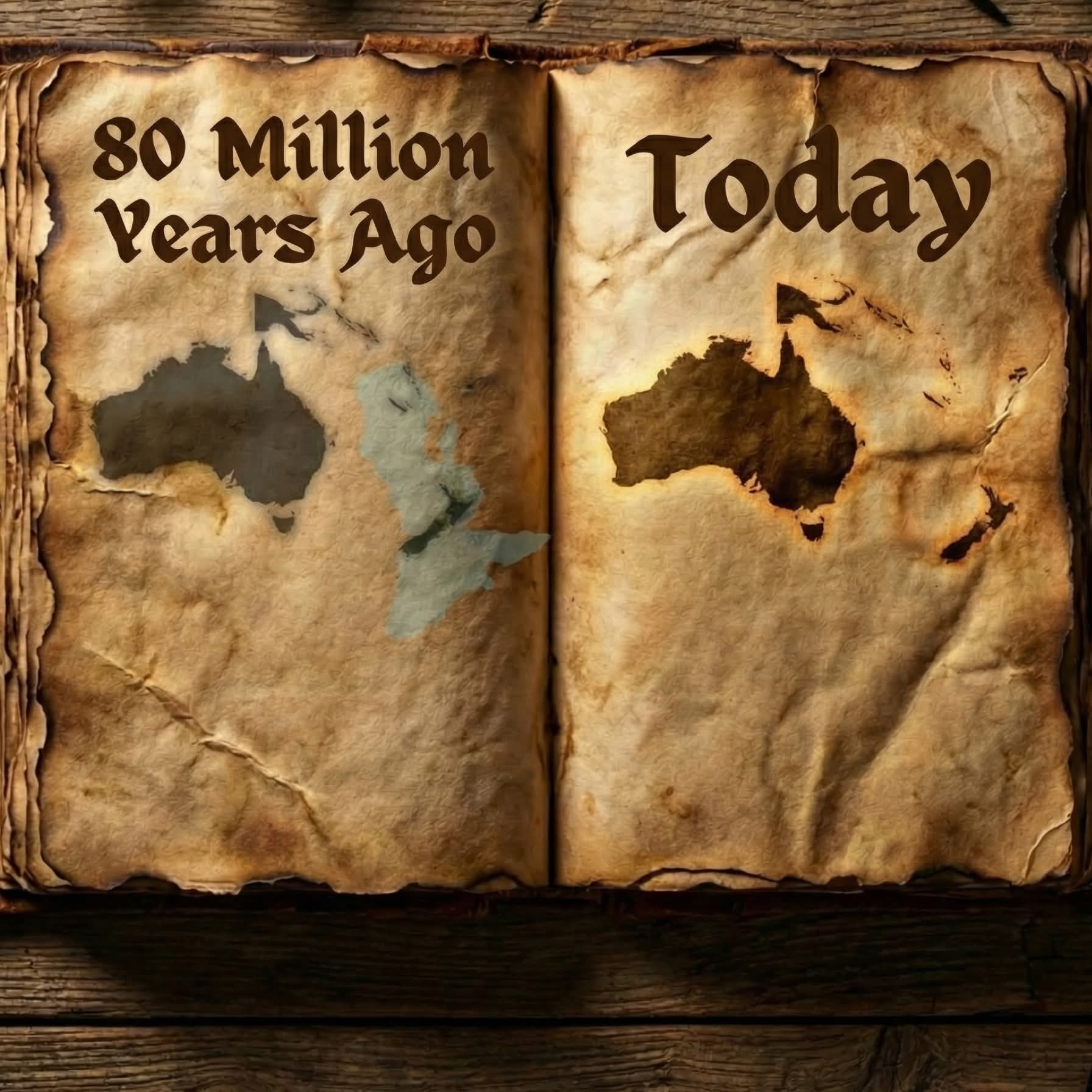 According to scientific findings referenced in The Lost Atlas, Zealandia separated from the ancient supercontinent Gondwana around 80 million years ago—a landmass that once included what are now Australia and Antarctica. At the time, Zealandia was a substantial above-water territory, estimated at nearly two million square miles, and is believed to have supported extensive rainforests and diverse prehistoric ecosystems.