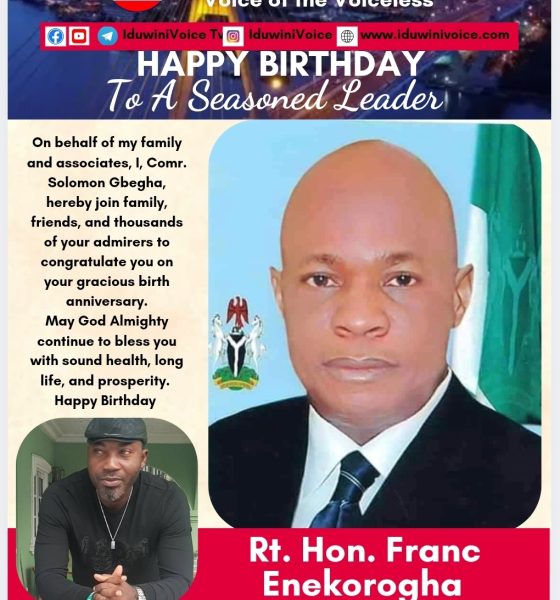 IduwiniVoice Adds Ambassador Tom Ebiakpo Willy has extended warm Yuletide greetings to his family, friends, and the entire Ijaw Nation, urging unity, peace, and renewed commitment...